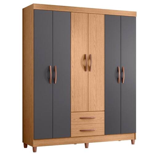 Produto: Guarda Roupa Âmbar 6 Portas Cor: Freijó/Titanium Puxadores Com Acabamento Metalizado Bronze Escala de Brilho: Fosco Altura (m): 1,89 Largura (m): 1,54 Profundidade (m): 0,47 Peso (kg): 75,1 Material: MDP Acabamento: Pintura Uv Material do Puxador: Abs Tipo de Cabideiro: Madeira Quantidade de Gavetas: 2 - Tipo de Corrediça: Metálicas Quantidade de Portas: 6 - Tipo de Porta: Bater Quantidade de Prateleiras: 4 Rodízios: Não Quantidade de Pés: 6 - Material dos Pés: ABS Necessita Montagem: SIM Espelho: Manutenção: Limpar Com Flanela Ou Pano Macio Seco, Não Utilizar Produtos Abrasivos, Desengordurantes, Álcool Ou Solvente. Não Expor O Produto Diretamente À Luz Solar E À Umidade. Garantia: 3 Meses