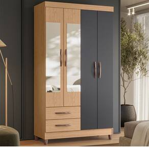 Guarda Roupa Âmbar Solteiro 4 portas com espelho Albatroz