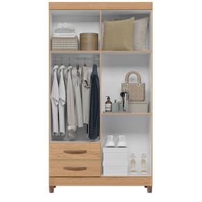 Com dimensões de 103 cm de largura, 47 cm de profundidade e 189 cm de altura, este guarda-roupa é ideal para quartos solteiros. Possui duas gavetas e três prateleiras, permitindo uma organização eficiente de roupas e acessórios. A estrutura em MDP garante durabilidade e resistência, suportando até 53,85 kg.