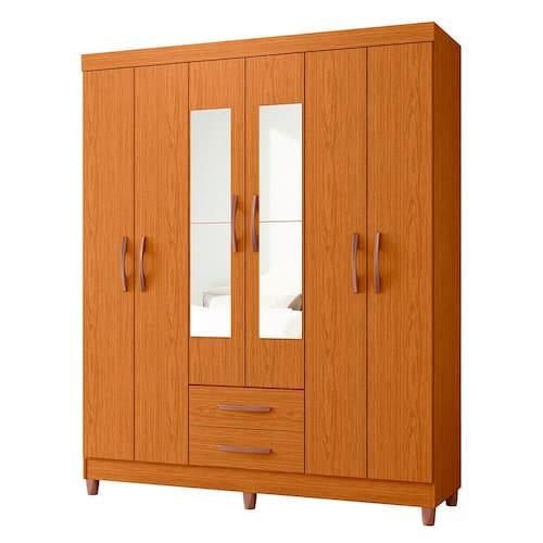 Guarda Roupa Âmbar Solteiro 6 Portas com Espelho Albatroz