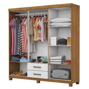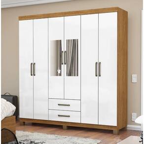 Estrutura em MDP 6 Portas de bater com dobradiças metálicas de pressão 2 gavetas com corrediças metálicas 5 nichos internos, sapateira, 4 prateleiras Cabideiro de 1m com suporte no centro Puxadores de polímero Pintura UV semi brilho Pés plástico PVC de 7cm