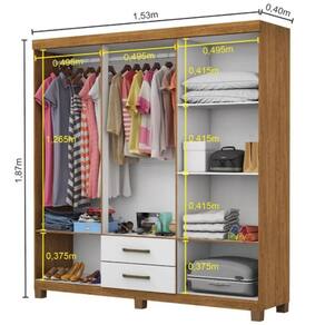 Medidas do produto montado Altura:1,87m Largura:1,53m Profundidade:0,40m