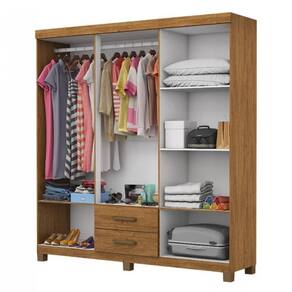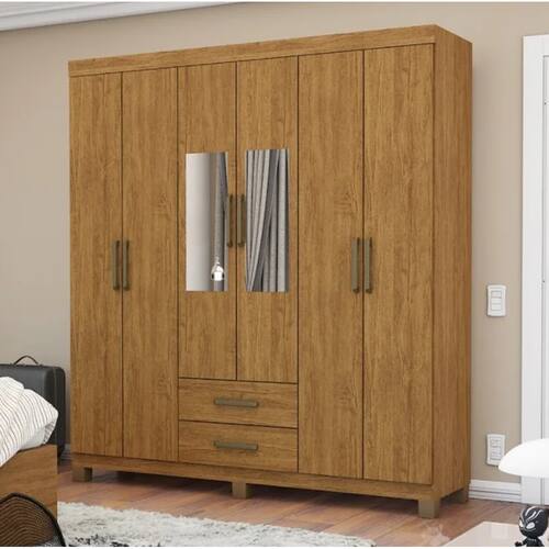 Estrutura em MDP 6 Portas de bater com dobradiças metálicas de pressão 2 gavetas com corrediças metálicas 5 nichos internos, sapateira, 4 prateleiras Cabideiro de 1m com suporte no centro Puxadores de polímero Pintura UV semi brilho Pés plástico PVC de 7cm