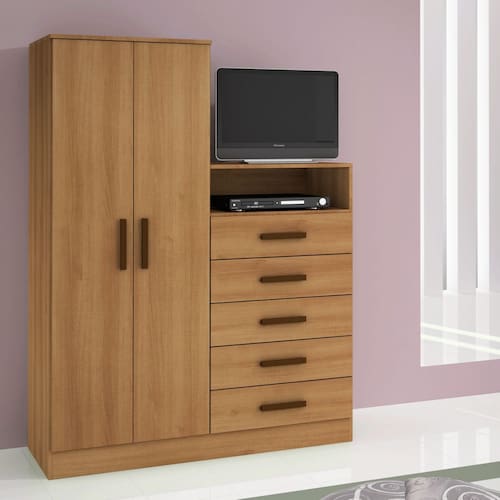 Guarda-Roupa Armário Roupeiro Cômoda Quarto Solteiro Cinamomo