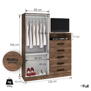 Guarda-Roupa Armário Roupeiro Cômoda Quarto Solteiro Rústico