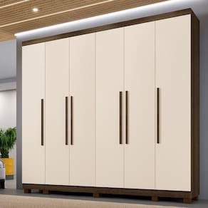 Guarda Roupa Atlanta 6 Portas 6 Gavetas 12 Prateleiras - Ben Imbuia Off O Guarda-Roupa Atlanta e produzido em chapa de 15 mm que garante robustez e maior vida util, com design moderno contem portas laterais independente. Conta com 6 portas, 12 prateleiras, 6 gavetas com corredicas telescopica e puxadores internos em pvc, cabideiro em aluminio, espaco para longos, pes inclusos no produto e puxadores amadeirados, otimo custo-beneficio. Sua fabricacao utiliza a linha mdp perffect, que une a sustentabilidade a inovacao tecnologica, proporcionando durabilidade e facil limpeza; inspirando sofisticacao ao mobiliario. Sua pintura uv conta com boa resistencia, e facil de limpar e e ecologicamente correto, pois utiliza madeira de reflorestamento, evitando o desmatamento. Caracteristicas: Material principal: MDP Espessura da chapa: 15 mm Escala de brilho: semibrilho Sistema de montagem: parafuso, cavilha e cantoneiras metalicas Quantidade de Portas: 06 Quantidade de Gavetas: 06 Quantidade de Prateleiras: 12