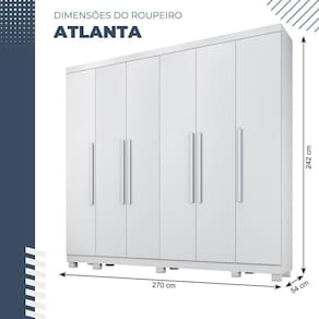 Todo mundo busca um dormitorio completo e organizado, o guarda-roupa Atlanta foi projetado para proporcionar praticidade e funcionalidade no uso diario, com materias prima de qualidade e de ultima geracao. Todo o projeto foi pensado para embelezar seu quarto com muita praticidade no uso e muita qualidade e durabilidade no dia a dia.