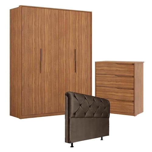 Guarda Roupa Attore 4 Portas e Cômoda Atria Amêndola com Cabeceira Daiana 160 cm Marrom – Demartêz
