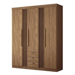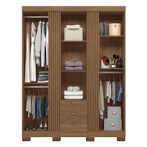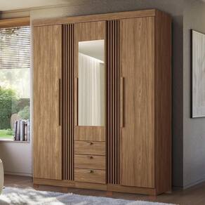 Guarda Roupa Aurora Ripado 3 Portas E 3 Gavetas Jatobá Com Espelho E Pés - Santos Andirá Jatobá Guarda Roupa Aurora Ripado 3 Portas e 3 Gavetas com Espelho e Pés - Santos Andirá O Guarda-Roupa Aurora é o auge da elegância e praticidade. Com 3 portas largas que se abrem amplamente, este móvel é sinônimo de qualidade superior e design sofisticado. Ideal para quem busca funcionalidade sem abrir mão do estilo, conta com 3 gavetas externas deslizantes suavemente com puxadores pontuais em ABS para um toque moderno, e portas com puxadores revestidos em MDF para um acabamento impecável. O charme incomparável deste guarda-roupa está nas suas vistas externas com efeito ripado, seguindo as últimas tendências de design. E para surpreender ainda mais, inclui uma meia lateral falsa para guardar seus itens mais preciosos com . Com um acabamento externo de alto padrão, aplicado com tecnologia REVERSE para um toque levemente texturizado em semi fosco, o Guarda-Roupa Aurora é a escolha perfeita para quem busca o melhor em móveis. ESPECIFICAÇÕES: - Estrutura em MDP - Pintura UV - Acabamento Reverse - 3 Portas - Dobradiças metálicas - Puxadores em MDF revestidos nas portas - 3 Gavetas externas - Corrediças telescópicas - Puxadores pontuais em ABS nas gavetas - 3 Cabideiros em alumínio - Vistas externas com efeito ripado - Prateleiras - Aplicação de espelho - Amplo espaço interno - Pés em PVC