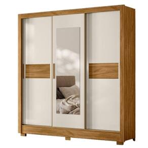 Guarda Roupa Bahamas Casal Com Espelho 3 Portas 2 Gavetas Freijó Off White - Fabrica 1 Móveis