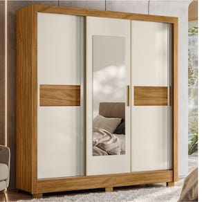 - Design moderno e versátil; - Acabamento de alta qualidade; - 3 Portas deslizantes com espelho central; - 2 Gavetas internas; - Puxadores em MDF; - Pés em PVC; - Porta central com ante empeno em aço; - Portas laterais com molduras de MDF 25mm; - Cor freijó/Off White;
