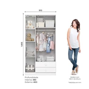 O(a) Roupeiro Bala de Menta 3 Portas Branco e Branco/Rosa Chá é produzido em Caixa: MDP 12mm