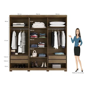Produzido 100% em MDP e com acabamento em pintura UV fosca, o Barcelos alia durabilidade e sofisticação. Seu espaço interno é surpreendente: são seis portas de giro com dobradiças metálicas, quatro gavetas com corrediças telescópicas e sete prateleiras estrategicamente distribuídas – seis fixas e uma removível – ideais para organizar roupas, acessórios e calçados com facilidade. Os dois cabideiros de alumínio oferecem suporte para peças maiores, otimizando a organização.