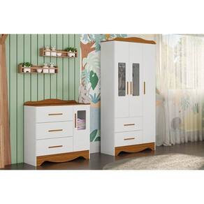 Guarda Roupa Bebê Clara C/ 3 Portas E 2 Gavetas Branco Brilho - Peroba