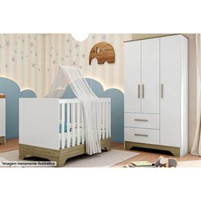 Guarda Roupa Infantil Clara c/ 3 Portas Lisa e 2 Gavetas Branco - Peroba