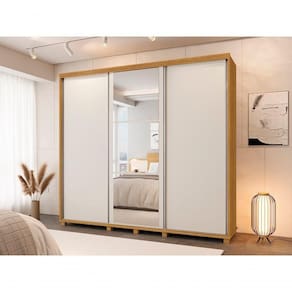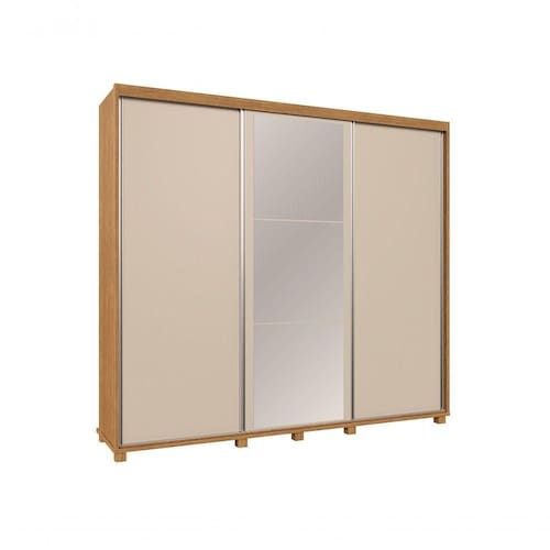 Guarda Roupas Casal 03 Portas de Correr Berlin Com Espelho Camas Fenix