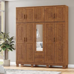 Características: Estrutura em Madeira Pintura Acetinada Verniz PU e UV Aplique com Acabamento Frisado e Alto Relevo Montagem Bipartido Amplo Espaço para Armazenamento Prateleiras e Divisórias Internas em MDFde 12 mm Pés, Puxadores, Estrutura das Portas e Cabideiro em Madeira 02 Gavetas com Corrediças Metálicas 10 Portas Dobradiças Metálicas Peso Máximo Suportado pelas Gavetas 05kg Distribuídos Peso Máximo Suportado pelas Prateleiras 08kg Distribuídos