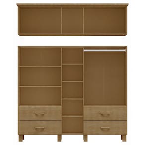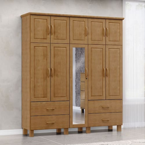 Características: Estrutura 100% em Madeira Maciça Pintura Acetinada Verniz PU e UV Amplo Espaço para Armazenamento Montagem Bipartida 04 Gavetas com Corrediças Metálicas 10 Portas com Dobradiças Metálicas Cabideiros em Alumínio (Peso Máximo Suportado 08kg Distribuídos); Peso Máximo Suportado pelas Gavetas 05kg Distribuídos Peso Máximo Suportado pelas Prateleiras 08kg Distribuídos