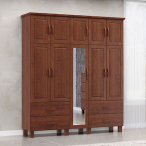 Características: Estrutura 100% em Madeira Maciça Pintura Acetinada Verniz PU e UV Amplo Espaço para Armazenamento Montagem Bipartida 04 Gavetas com Corrediças Metálicas 10 Portas com Dobradiças Metálicas Cabideiros em Alumínio (Peso Máximo Suportado 08kg Distribuídos); Peso Máximo Suportado pelas Gavetas 05kg Distribuídos Peso Máximo Suportado pelas Prateleiras 08kg Distribuídos