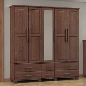 O Guarda Roupa Bipartido 5 Portas e 6 Gavetas da Linha Ouro é feito 100% de madeira maciça, o acabamento é em Verniz Acetinado PU e UV.