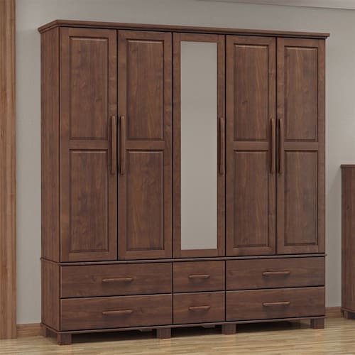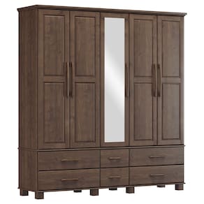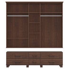 Guarda Roupa Bipartido 5 Portas e 6 Gavetas Linha Ouro Madeira Maciça 2253WN Café Finestra - Marrom Cacau