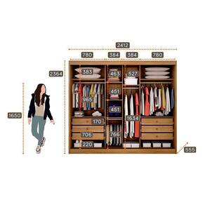Guarda Roupa Budapest 3 Portas 6 Gavetas Clic Móveis Cumaru Guarda Roupa Budapest 3 Portas 6 Gavetas Clic Moveis 100 MDF, colunado em 25mm, interno ele e ela, trilho inferior em aluminio e roldanas com amortecedores, perfil puxador e batente alinhador em aluminio bronze, roldana superior com guia zero e freio, espaco para longo, gavetas com puxadores e corredicas telescopicas, cabideiros e calceiro em aluminio.