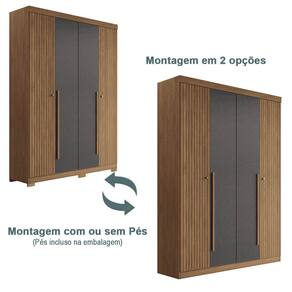 Guarda-Roupa Buriti Jatobá/Grafite 4 Portas 2 Gavetas Cabideiro e Pés - Santos Andirá