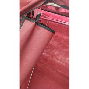 O guarda roupa acompanha elastico e ganchos para fixar na porta e permitir que a deixe fechada, como uma cortina.