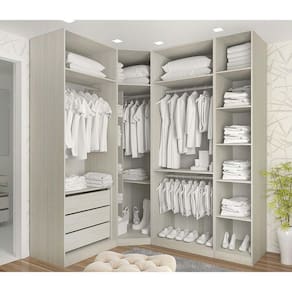 Guarda Roupa Canto Closet Sem Portas 4 Peças, 3 Gavetas, 4 Cabideiro Prime Luciane Móveis Legno Crema