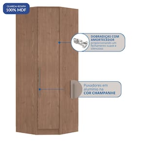 Guarda-roupa Canto Oblíquo 1 Porta 100% Mdf Requinte+ Macadâmia - Marrom
