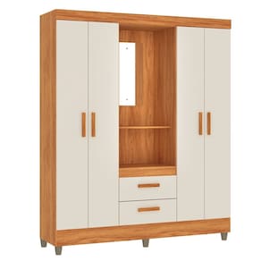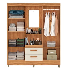O roupeiro Vetro possui várias vantagens e diferenciais, sendo um excelente produto para o cliente exigente que busca um guarda-roupa diferenciado e bonito, mas sem abrir mão da qualidade e praticidade na hora de organizar seus pertences. Possui capelinha com espelho incluso de 52cm x 30cm x 3cm e prateleira externa. O roupeiro tem 4 portas com dobradiças metálicas e 2 gavetas com corrediças metálicas. Possui um excelente aproveitamento do espaço interno, com cabideiro e prateleiras. O acabamento é Pintura UV, o que garante durabilidade e sofisticação. O interno é na cor da caixaria. Os pés de 7cm são na cor bronze e os puxadores são MDF Cinamomo. Com certeza esse é o produto que faltava para deixar seu dormitório lindo e organizado! Aproveite e adquira agora mesmo! Acabamento da Prateleira: Pintura UV Escala de Brilho da Prateleira: Semi-Brilho Possui Cabideiros: Sim Acabamento da Gaveta: Pintura UV Escala de Brilho da Gaveta: Semi-Brilho Material do Puxador da Gaveta: MDF Possui Organizador de Gaveta: Não Acabamento da Porta: Pintura UV Escala de Brilho da Porta: Semi-Brilho Material do Puxador da Porta: MDF Altura do Espelho: 30 cm Altura dos Pés: 7 cm Altura Máxima dos Pés: 7.0000 Ambiente Principal: Quarto codigo_ean: 7900288257154 Complexidade da Montagem: Baixa: pode ser montado por uma pessoa sozinha Cor: Cinamomo/Off White Cor da Porta: Off White Cor do Produto: Cinamomo/Off White Cor Interna: Cinamomo Escala de Brilho: Semi-Brilho Espessura da Estrutura (mm): 12 mm Espessura das Portas (mm): 12 mm Espessura das Prateleiras (mm): 12 mm Espessura do Espelho: 3 mm Espessura do Fundo (mm): 3 mm Espessura do Fundo das Gavetas (mm): 3 mm Formato do Espelho: Retangular Gaveta com Chave: Não Informações Complementares: Estilo capelinha com espelho e prateleira, acabamento pintura UV de última geração Itens Inclusos: 1 Guarda-Roupa, Kit Ferragens e Manual de Montagem Largura do Espelho: 52 cm Linha ou Coleção: Vetro Manual de Montagem e Instalação: https://product-hub-prd.madeiramadeira.com.br/888124529/documents/4958829a-19ea-49f7-bb63-00a01117f795326969040651760117349934.pdf Marca: Fellicci Material da Gaveta: MDP Material da Porta: MDP Material da Prateleira: MDP Material dos Pés: Plástico Material Principal: MDP modular: Não Necessita Montagem: Sim Origem do Produto: Nacional Peso: 63,8 kg Peso Máximo por Gaveta: 3 kg Peso Máximo por Prateleira: 8 kg Porta Janelada: Não Possui Calceiros: Não Possui Capelinha: Sim Possui Espaço para Vestidos Longos: Sim Possui Espelho: Sim Possui Espelho Interno: Sim Possui Ganchos: Não Possui iluminação: Não Possui Penteadeira: Sim Possui Pés: 06 Possui Portas: Sim Possui Prateleiras: Sim Produto Montado: Sim Quantidade de Cabideiros: 01 Cabideiro Quantidade de Espelho: 01 Quantidade de Gavetas: 02 Gavetas Quantidade de Portas com Espelhos: 1 Porta com Espelho Quantidade de Prateleiras: 05 Prateleiras Recomendações de Uso, Manutenção e Limpeza: Pano levemente umedecido com água Sistema de Montagem: Cavilhas, Parafusos, Etc Tipo de Corrediça da Gaveta: Metálica Simples Tipo de Dobradiça/Corrediça da Porta: Metálica Tipo de Fixação do Espelho: Parafusos Tipo de Gaveta: Externa Tipo de Guarda-Roupa: Casal Tipo de Puxador da Gaveta: Externo Tipo de Puxador da Porta: Externo