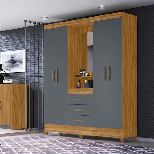 modelo: guarda roupa | cor: marrom Cor: Freijó/Cinza
