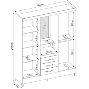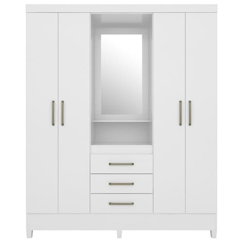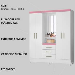 Guarda Roupa Capelinha 4 PT Com Espelho 43220, imponente veio pra trazer beleza e organização para seu quarto. Estrutura 100% em MDP 12 mm, feito com material ecologicamente correto, para melhor durabilidade e resistência da peça, conta com pintura em acabamento UV. Composto por cantinho especial (capelinha) esquipado com espelho para seus momentos de autocuidado e nicho para seus pertences, 04 portas de giro com dobradiças metálicas, 03 gavetas contendo corrediças metálicas, 4 prateleiras internas, 2 cabideiros metálicos, seus puxadores são em plástico ABS e pés em PVC. Além de ampla capacidade de armazenamento, foi desenvolvido para oferecer total conforto e comodidade para você. Este móvel chegará em sua casa separado em 02 volumes.