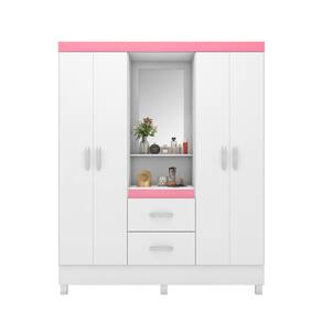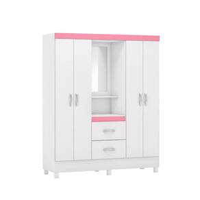 Guarda-Roupa Capelinha Lord 4 Portas com Espelho e Gavetas Branco/Rosa | 181cm | MDP - Branco | Rosa