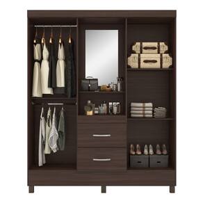 Produzido em MDP com acabamento em pintura UV, o móvel conta com cabideiro e calceiro metálicos, que auxiliam na organização das roupas. As gavetas possuem corrediças metálicas, garantindo melhor funcionamento na abertura e fechamento. O modelo também dispõe de espelho integrado, facilitando o uso diário.