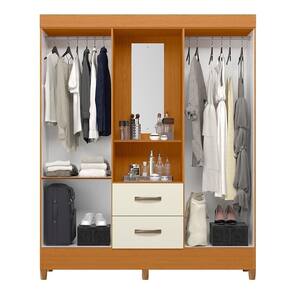 Guarda Roupa Capelinha Mobi 4 Portas Cinamomo/off White - Móveis Albatroz Cinamomo/off White Guarda Roupa Capelinha Mobi 4 Portas - Móveis Albatroz O Guarda-Roupa Mobi foi desenvolvido com design tradicional capelinha, unindo o roupeiro à penteadeira, o móvel ideal para quem busca versatilidade. Ele conta com espelho na parte central, estrutura em MDP, 2 gavetas e cabideiro para roupas longas, para seus pertences ficarem sempre organizados tornando sua rotina mais prática e funcional. ESPECIFICAÇÕES: - Estrutura em MDP - Pintura UV - 4 Portas - Dobradiça metálica - 2 Gavetas - Corrediças metálicas - Puxadores em ABS - Cabideiro em madeira revestida - Espelho central - Modelo capelinha - Pés em ABS