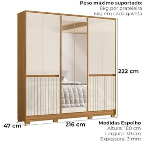 Guarda Roupa Casal 10 P Espelho 216 cm Alasca Moval - Off White