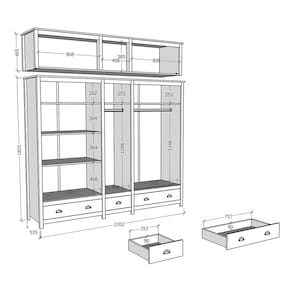 Conteúdo da Embalagem: 1 Guarda-Roupa, manual de montagem e Kit Ferragem