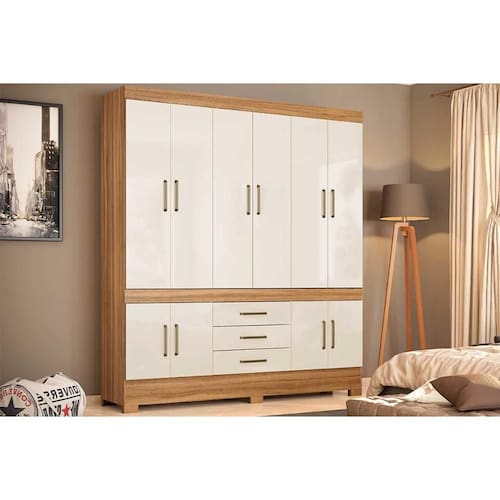 Guarda Roupa Casal 10 Portas e 3 Gavetas New Murano Amêndola/Off White - Demóbile