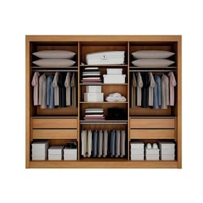 Guarda-roupa Casal 100% Mdf 3 Portas 4 Gavetas Com 3 Espelhos Milano Leifer Móveis Cinamomo/off White