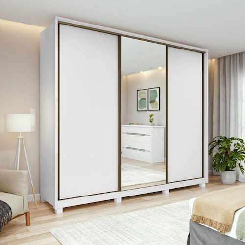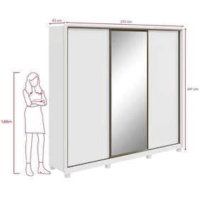 Guarda-Roupa Vitta 270 3 Portas Deslizantes com espelho interiço na porta central e pés