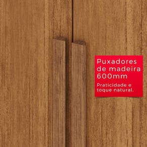 - Puxadores de madeira de 60 cm: pegada confortável e visual sofisticado.