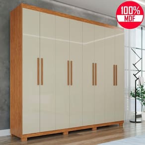 Altura: 205 cm | Largura: 219 cm | Material da Estrutura: 100% MDF | Pés: kit de pés incluso | Possui Espelho: Não | Profundidade: 42 cm | Quantidade de Gavetas: 4 gavetas | Quantidade de Portas: 8 Portas | Tipo de Portas: Bater Cor: Cinamomo
