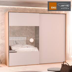 Guarda-Roupa Casal 100% MDF Édez Atena, 2 Portas de Correr com Espelho, Nature e Off White, 266 cm