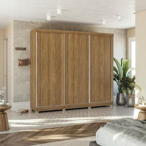 Deixe seu quarto ainda mais lindo, moderno e organizado com a linha de guarda-roupas 100% MDF da Loja Oficial Kappesberg.Na cor Nogueira, com 3 portas de correr e 8 gavetas, sem espelhos e pés em polipropileno, ele tem o tamanho ideal para um quarto de casal. Todo produzido com chapas de 15mm, o que garante mais robustez, firmeza e qualidade ao seu guarda-roupas.Sua pintura é feita com sete camadas, tanto na parte interna como na externa, garantindo mais durabilidade e beleza ao seu móvel. Além disso, as portas de correr tem puxadores em alumínio e possuem perfil metálico anti empeno.Você precisa de espaço? Na parte interna, há muito espaço com diversos nichos de tamanhos diferentes, ideal para organizar calçados e roupas dobradas. Nos cabideiros, que são metálicos e com suporte interno, garantindo melhor acabamento e durabilidade, é possível guardar as roupas em cabides e até mesmo organizar mantas e acessórios.Suas gavetas possuem corrediças telescópicas, garantindo a abertura total, para que você aproveite todo espaço disponível.