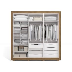 Você precisa de espaço? Na parte interna, há muito espaço com diversos nichos de tamanhos diferentes, ideal para organizar calçados e roupas dobradas. Nos cabideiros, que são metálicos e com suporte interno, garantindo melhor acabamento e durabilidade, é possível guardar as roupas em cabides e até mesmo organizar mantas e acessórios.