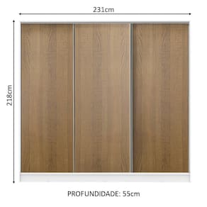 Medidas totais do armário: 218 cm de altura x 231 cm de largura x 55 cm de profundidade.