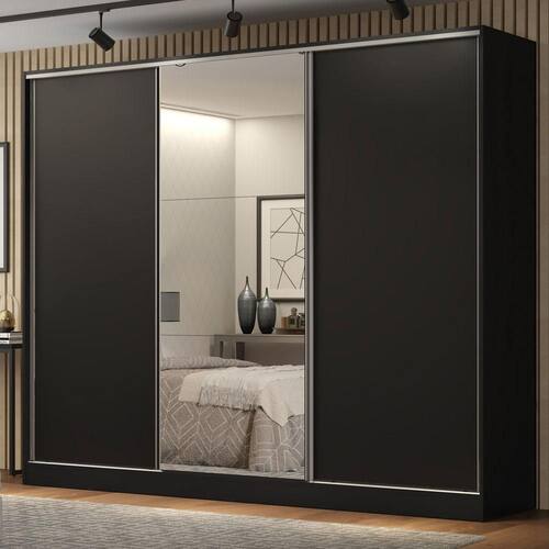 - Três (3) portas de correr, sendo duas (2) de madeira e uma (1) com espelhos