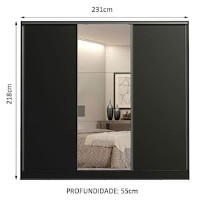 Medidas totais do armário: 218 cm de altura x 231 cm de largura x 55 cm de profundidade.