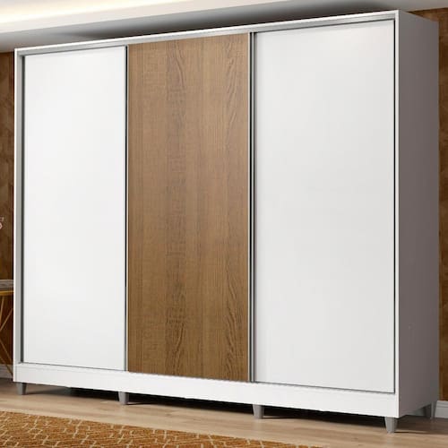 Conta com ótima distribuição interna, incluindo quatro gavetas espaçosas e com corrediças metálicas. Ideal para utilização no quarto de casal, o móvel possui abertura com três portas de correr com deslizamento suave, que facilitam a circulação no ambiente.